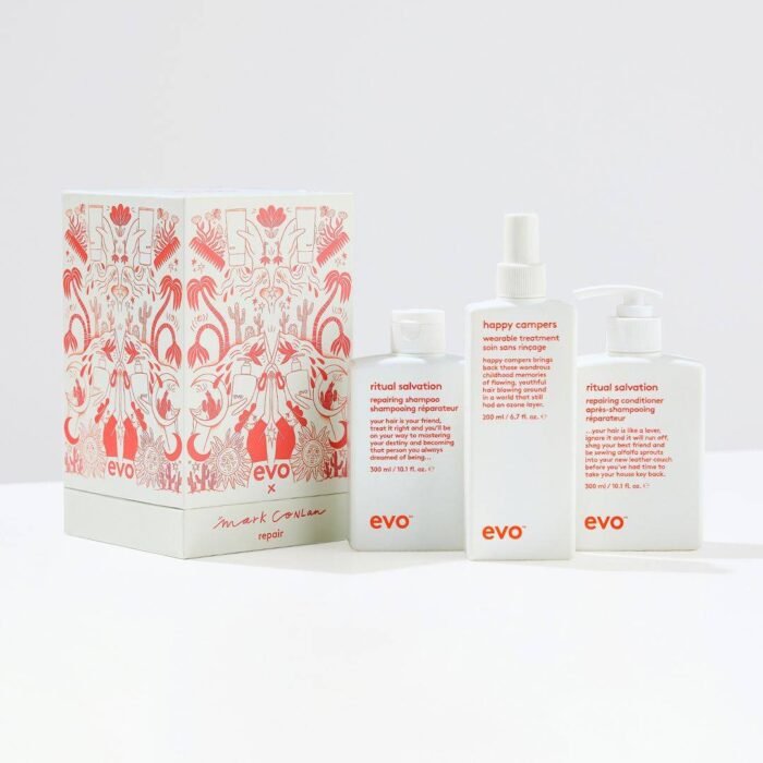 EVO GOOD GIVIN’ REPAIR: RITUAL SALVATION ŠAMPŪNAS + KONDICIONIERIUS + HAPPY CAMPERS FLUIDAS + TOTE BAG