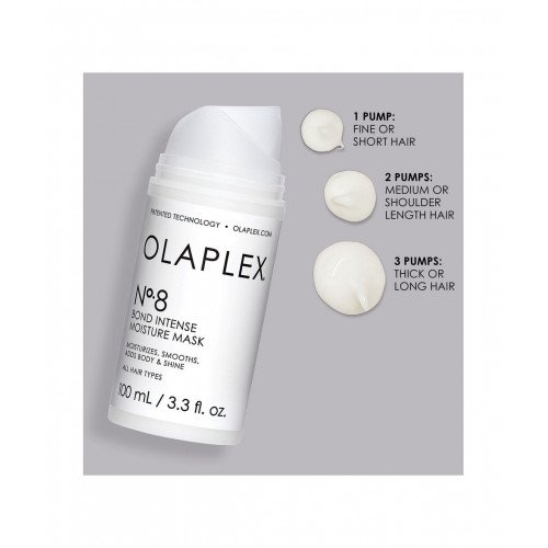 Olaplex No. 8 Bond Intense Moisture Mask – labai koncentruota kaukė plaukams, kuri ne tik drėkina ir lygina jūsų plaukus, bet ir suteikia apimties bei blizgesio vos per 10 minučių. Plaukai taps akivaizdžiai sveikesni ir gotnesni, todėl galėsite pamiršti plaukų stilizavimą/ formavimą.